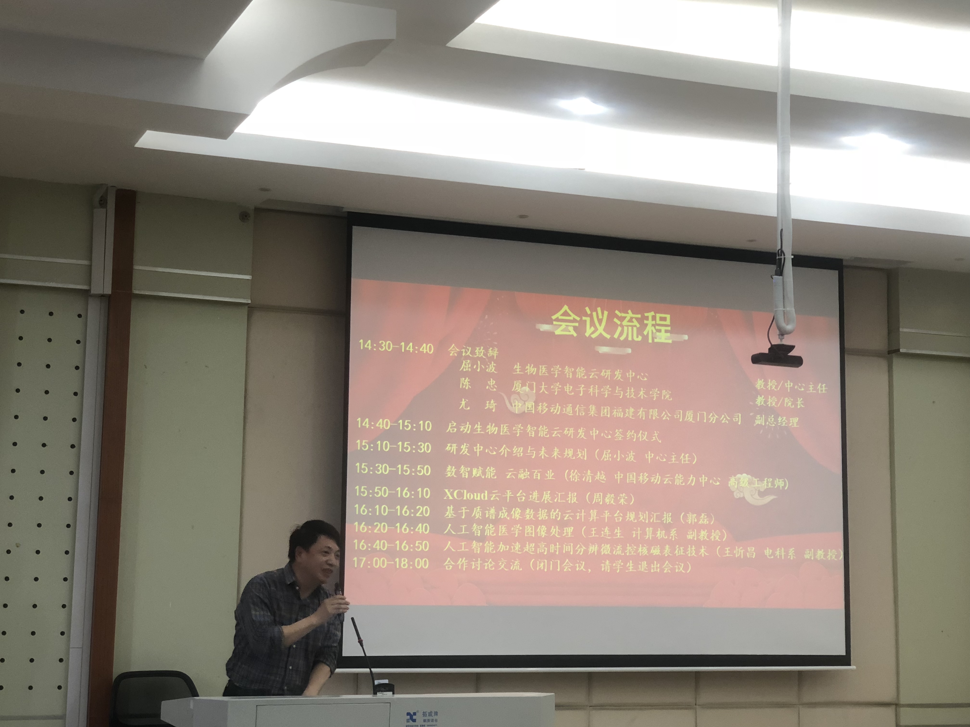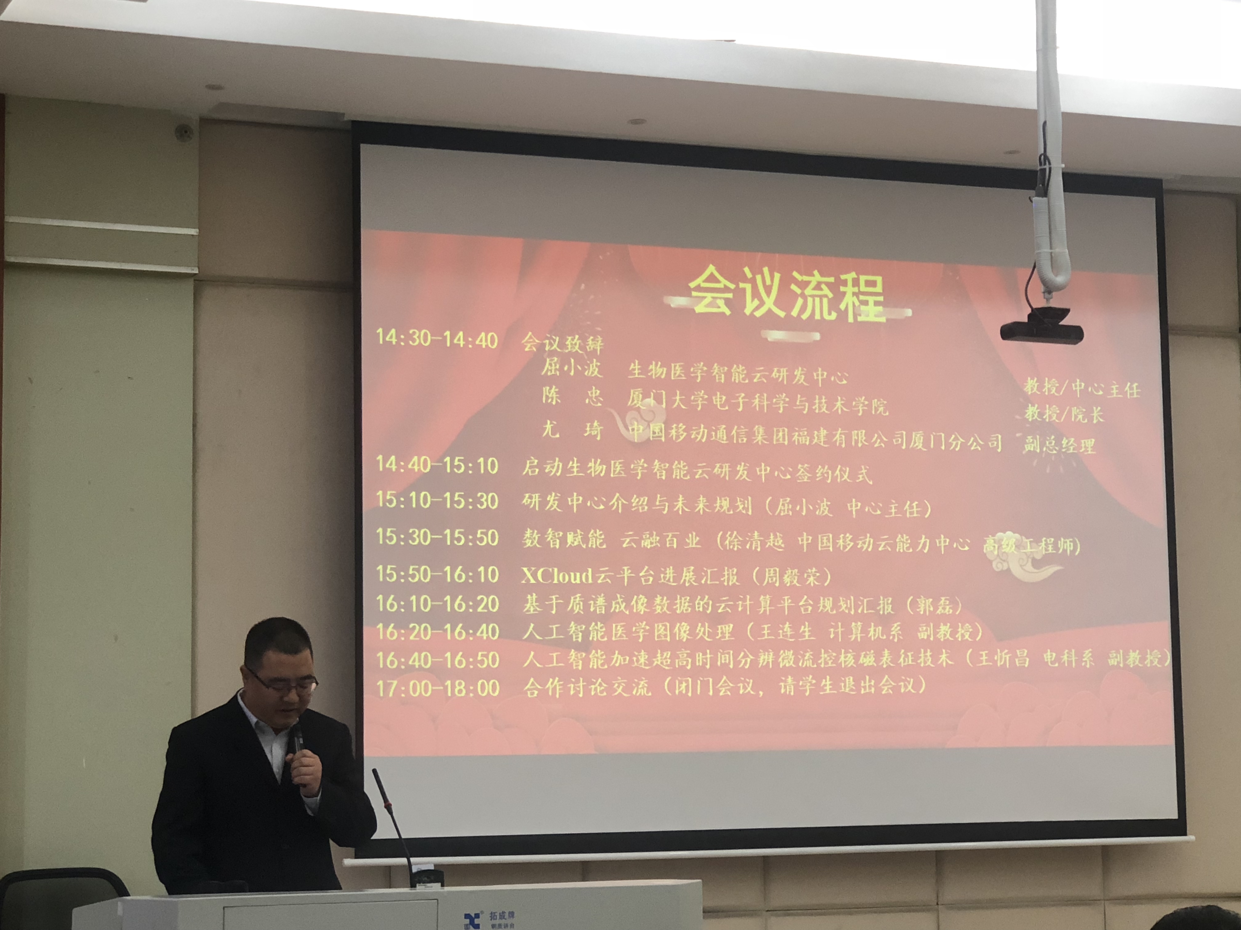 2021年4月29日下午,厦门大学电子科学与技术学院与中国移动福建厦门分公司“生物医学智能云研发中心”签约揭牌仪式在厦门大学正式举行,由中心主任屈小波教授主持。