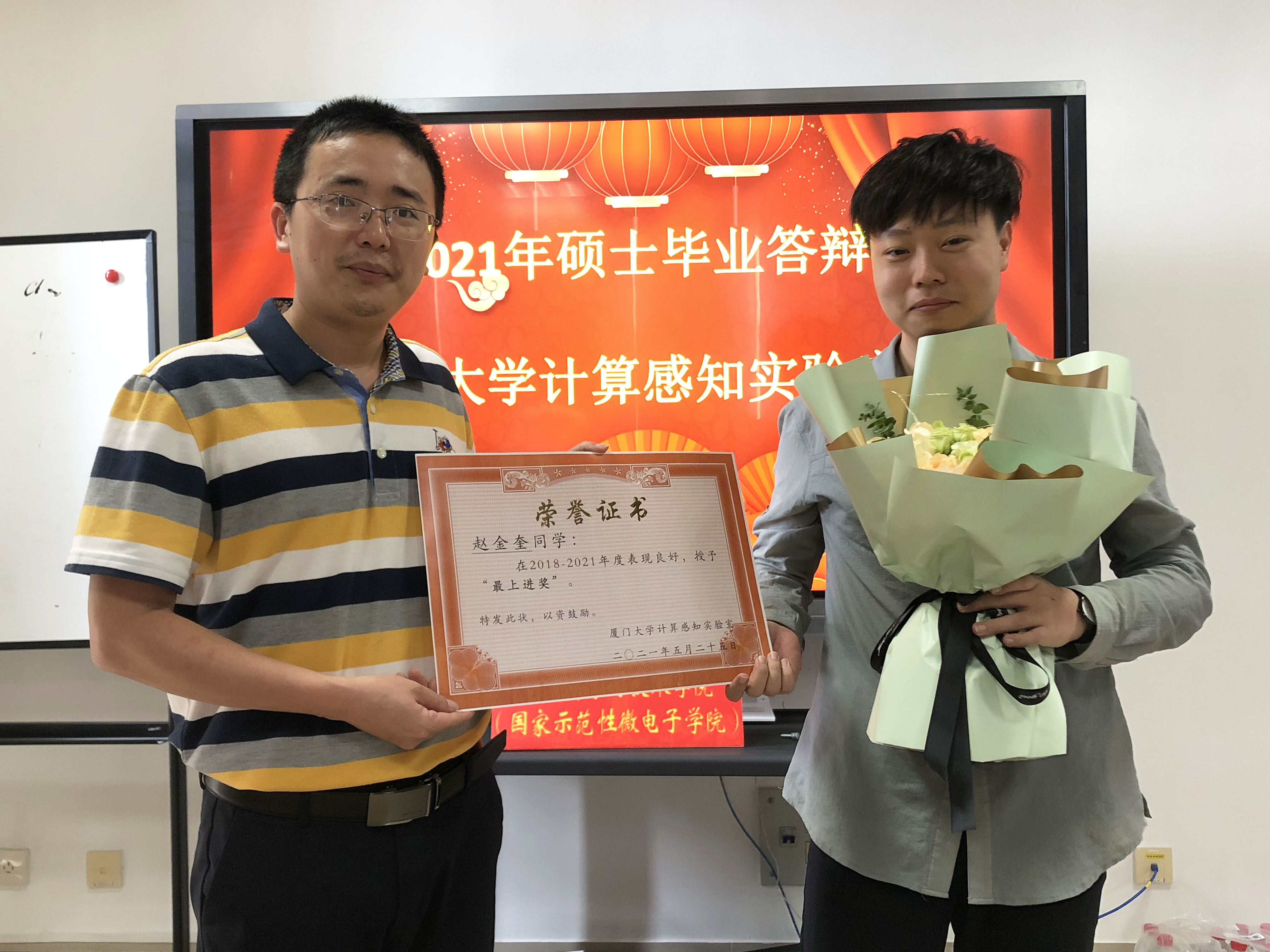 2021年5月25日,厦门大学电子科学与技术学院生物医学智能云中心,厦门大学计算感知实验室举办了2021届硕士研究生毕业答辩会。答辩学科涉及到人工智能、磁共振医学成像、癫痫疾病分析,答辩委员会主席厦门大学电子科学系董继扬教授担任,答辩委员会由包立君副教授、厦门大学附属中山医院林建忠主任医师组成,答辩秘书由王新 高级工程师担任,答辩学生有赵金奎(本科:上海交通大学)、胡榆涵(本科:电子科技大学)、刘东宝(本科:福建师范大学)。
