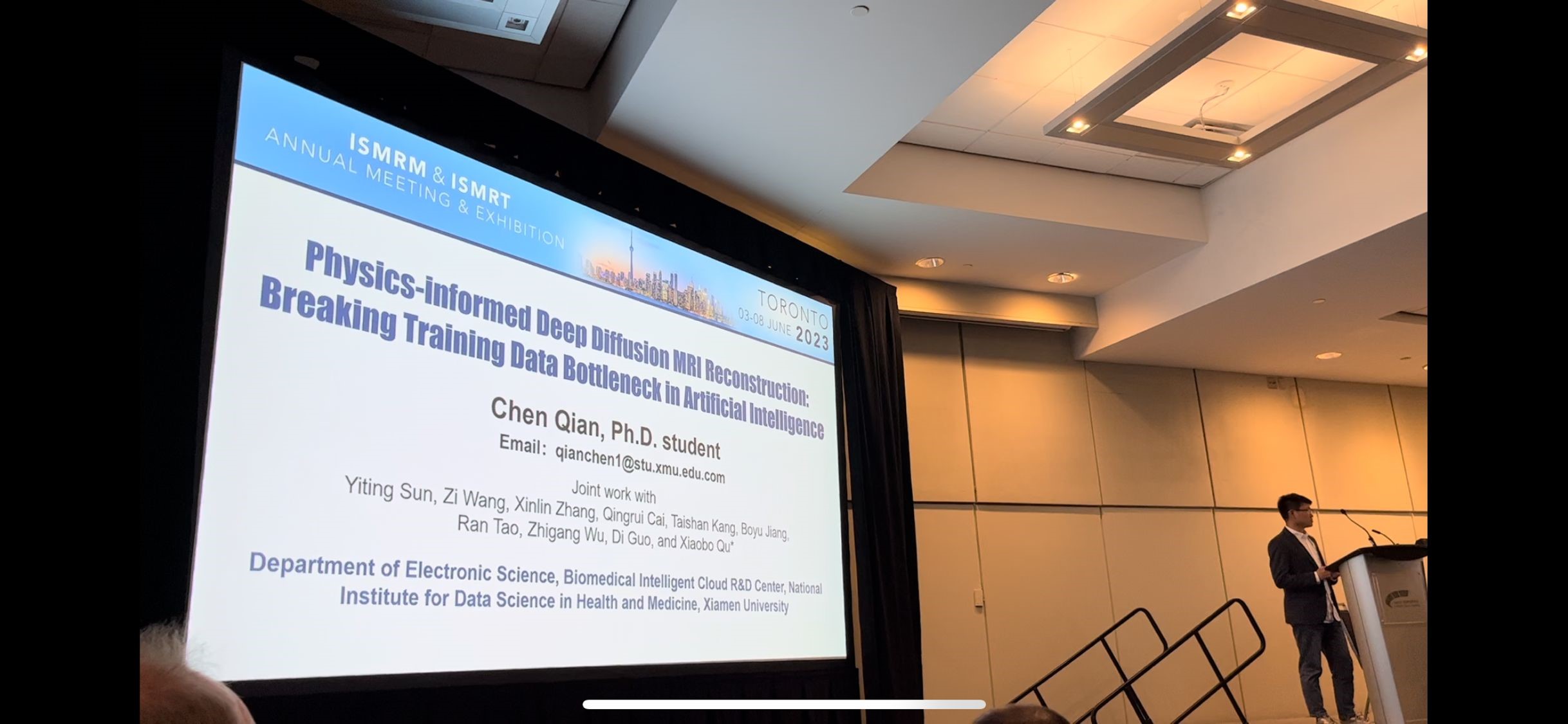 实验室屈小波老师主持ISMRM专场报告“Deep Learning: From Mathematical Models to Clinical Practice”,分享最新的研究成果和技术进展,与世界各地的同行学者进行深入交流和合作,共同探讨医学磁共振在临床诊断、疾病研究和治疗方面的前沿应用。