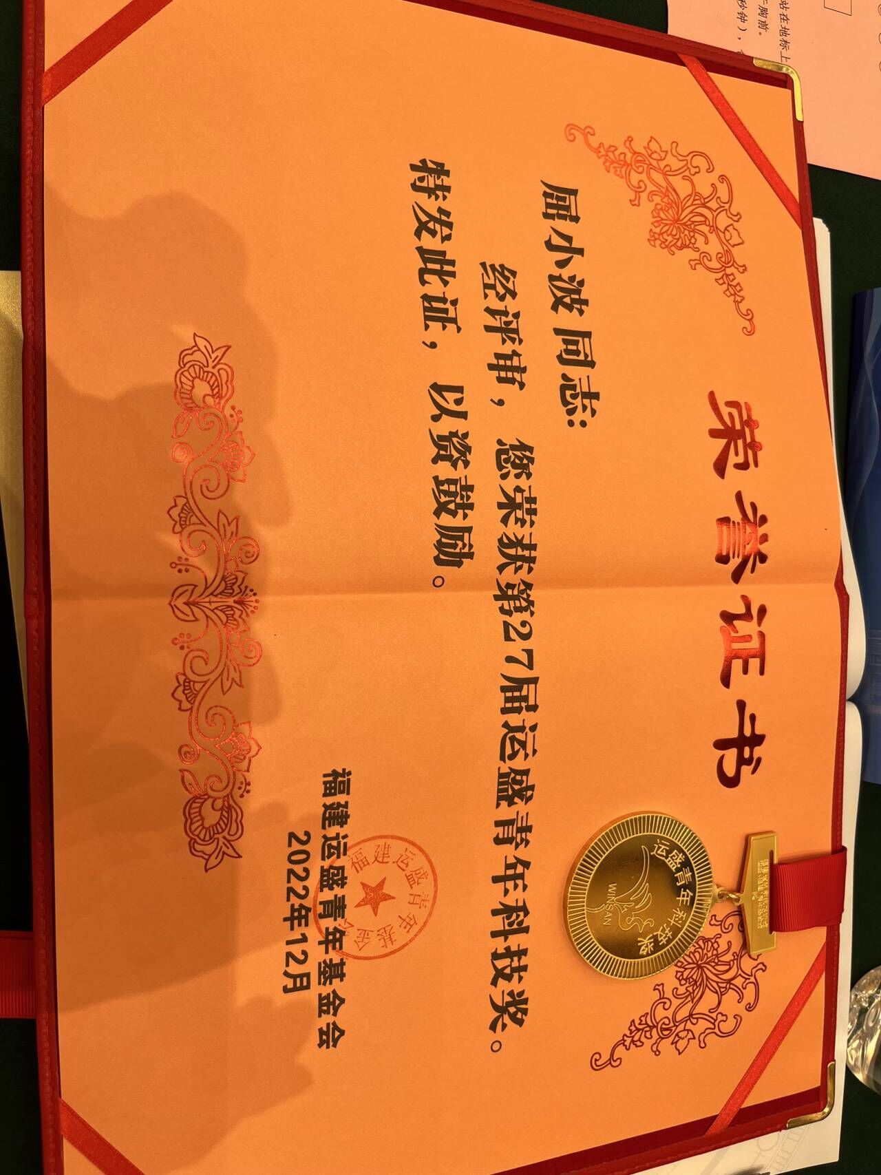 8月22日,在第二十三届福建省科协年会上,根据《福建运盛青年基金会奖励条例》,经第二十七届运盛青年科技奖专家评审委员会评选,福建运盛青年基金会理事会审议通过,屈小波教授荣获第二十七届运盛青年科技奖。