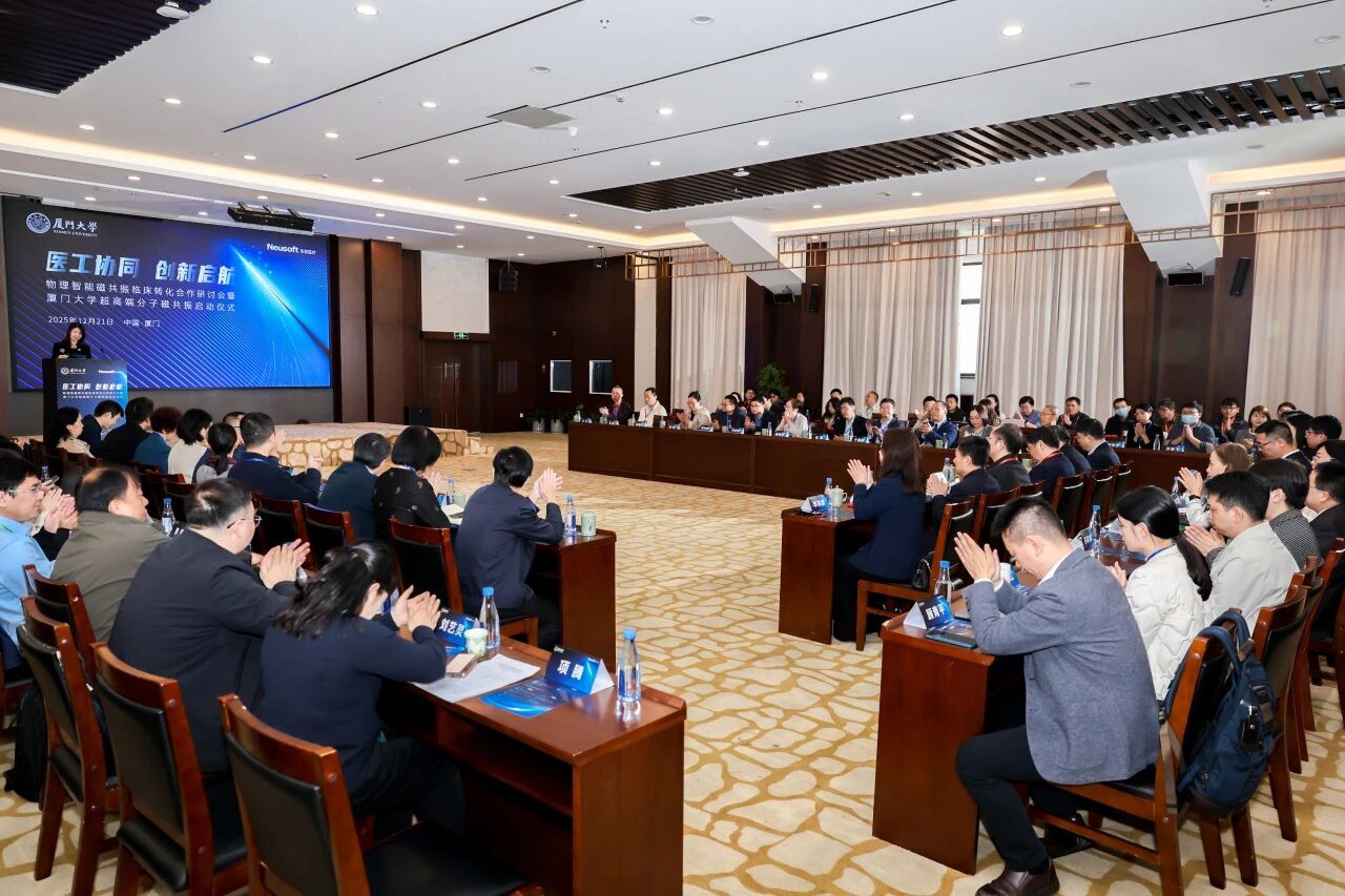 12月21日,物理智能磁共振临床转化合作研讨会暨厦门大学超高端分子磁共振启动仪式在厦门大学翔安校区举办。本次研讨会由厦门大学、东软医疗、中科牛津波谱联合举办。本次会议以“医工协同,创新启航”为主题,汇聚了磁共振领域的众多专家学者、东软医疗及中科牛津波谱等企业代表,多家医院与科研机构的用户代表,以及厦门大学相关学院师生100余人,共同探讨产学研医协同创新机制与未来发展方向。
