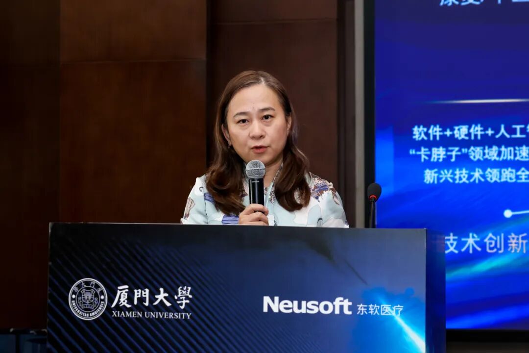 上午主题演讲上,聚焦技术前沿、临床转化与产业协同三大维度,与会嘉宾展开了深入研讨。刘买利院士以《强场生物磁共振》为题,深入解析强场技术对生命科学研究与精准医疗的支撑价值;厦门大学电子科学与技术学院陈忠教授分享了《从单核到多核磁共振代谢影像新技术及其生物医学应用》的前沿成果;东软医疗创新研究院院长陈炳澍女士阐述了《国匠创新 智领健康:共建高端医疗装备创新中心》的产业实践路径;通用技术金砖(厦门)投资发展有限公司孙艺芳总经理则从跨国协同视角,分享了金砖创新基地对高端医疗装备创新的赋能作用。厦门大学电子科学与技术学院屈小波教授与东软医疗蒋先旺博士共同介绍校企联合研发中心的最新项目进展。